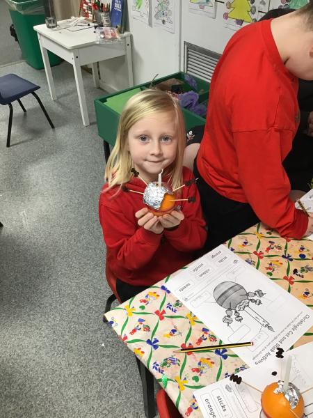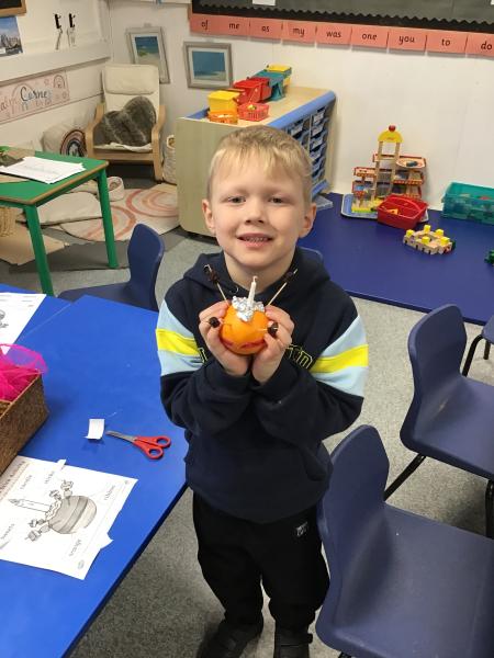 Science: We carried out two brilliant experiments. First, we made balloon “space rockets” to investigate whether the length of the straw affected how far the rocket travelled. Then we tested different materials as “astronaut gloves” to find out which were suitable or unsuitable for keeping hands dry.