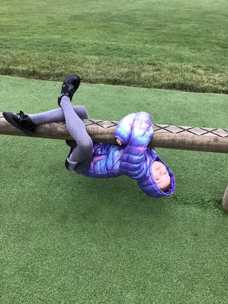 The children have been developing their gross motor skills outside with lots of climbing, running, rolling and riding bikes.