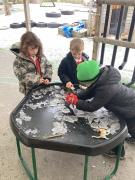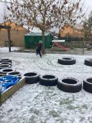 Despite the weather the children have enjoyed playing outside, jumping in muddy puddles and then using the puddles to paint our hut.
