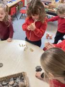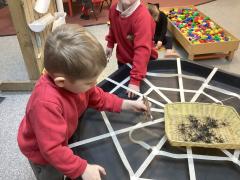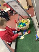 In maths, we have explored the numbers from one to ten. The children have really enjoyed investigating numbers practically, using everyday objects and mathematical resources. They have also focused on exploring and finding different ways to make a number using Numicon I.e. 6+4=10. The children are developing their 1:1 counting skills and continued support at home is much appreciated.